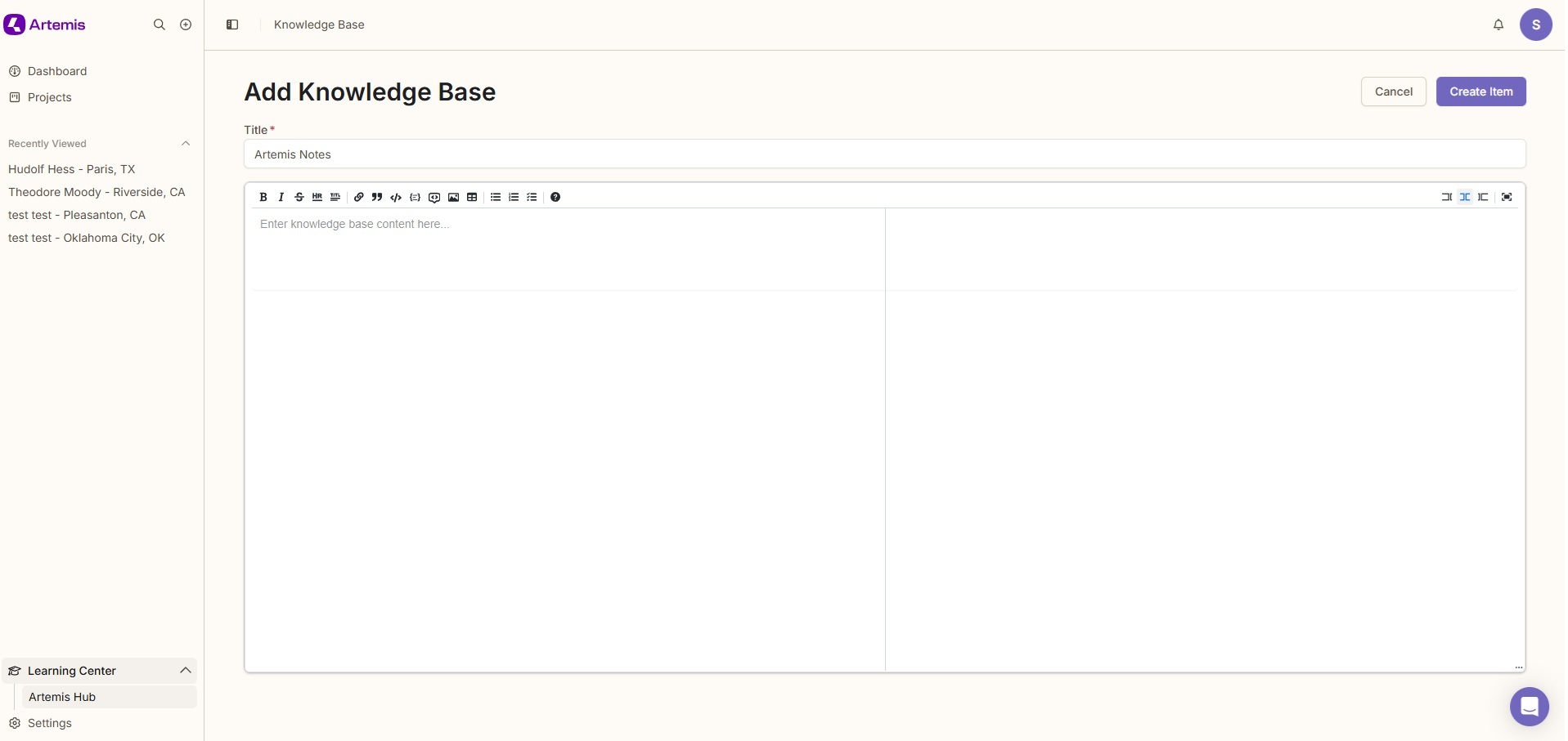 The Organization Hub makes internal training and team communication effortless. Instead of scattered PDFs and Slack threads, everything your team needs is right inside Artemis exactly where they need it.
